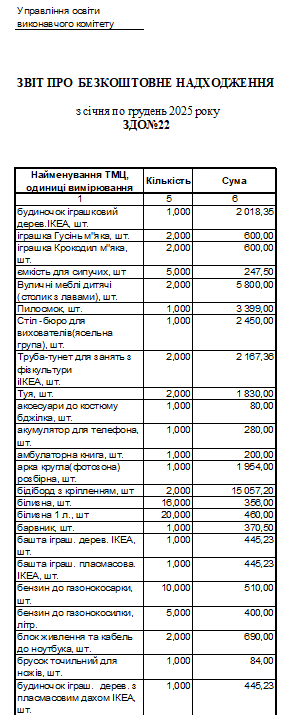 Безкоштовні надходження 2025 рік (БН)