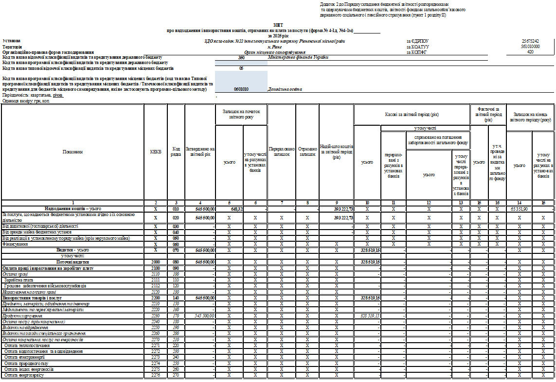 Звіт про надходження і використання коштів, отриманих як плата за послуги (форма № 4-1д, №4-1м) 2025 рік назад до 2025 рік