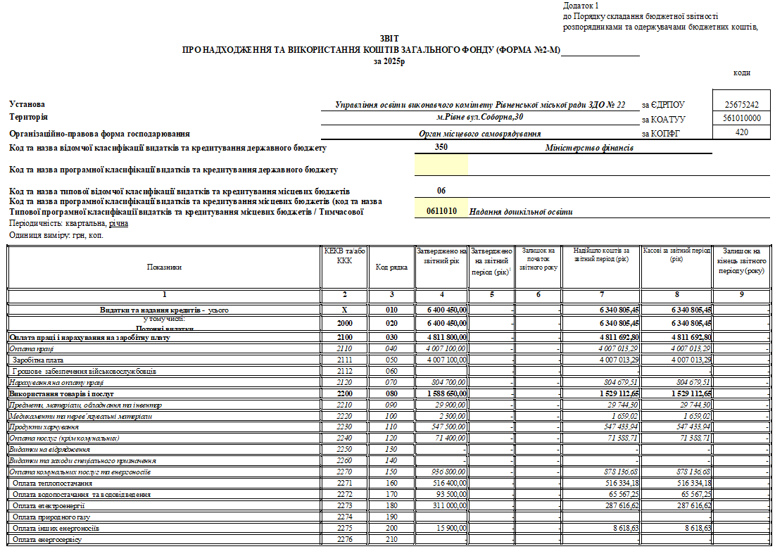 Звіт про надходження та використання коштів загального фонду (ф. №2-М) 2025 рік
